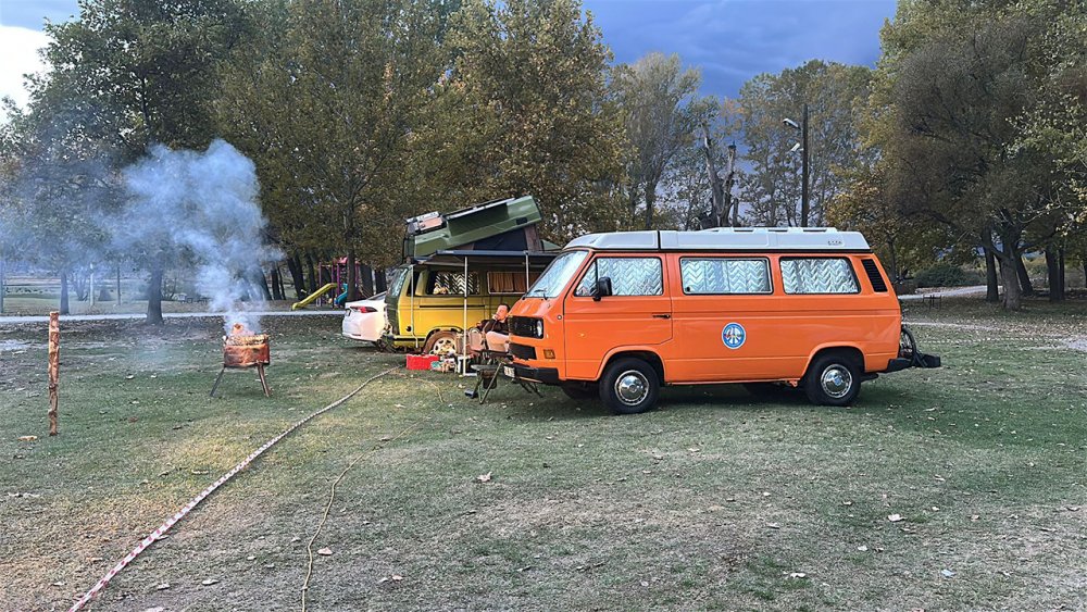 Araçlarıyla ilçe merkezinden geçen vosvos tutkunları, vatandaşları selamladı. Daha sonra kendileri için ayrılan alanda kamp çadırlarını kuran vosvos tutkunları, rengarenk vosvoslarını sergiledi. Çayır alanında vosvosçularla bir araya gelen vatandaşlar, araçlarla fotoğraf çektirdi.