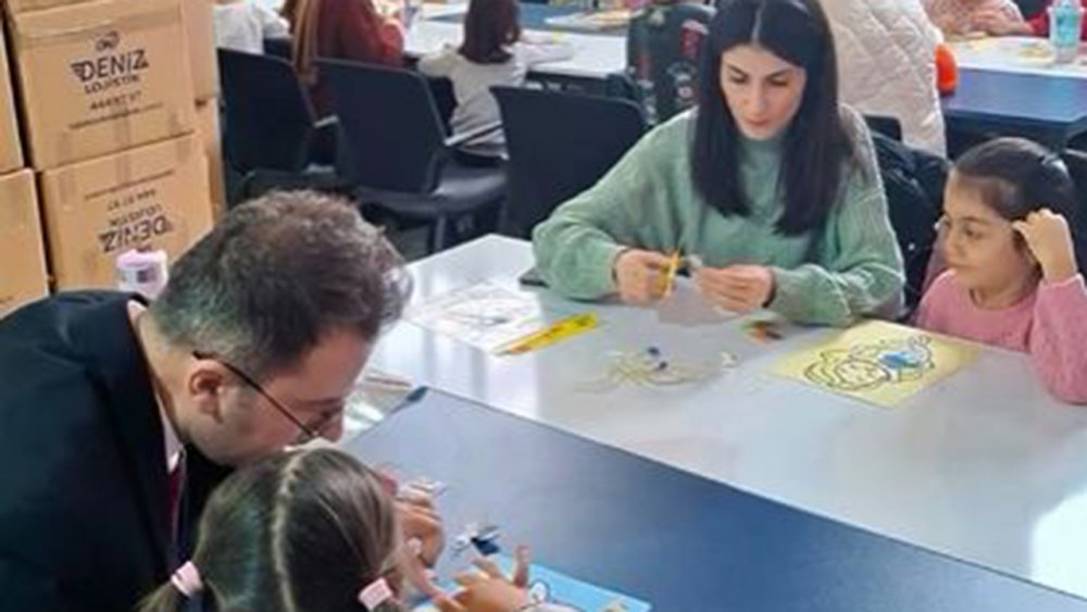 Renkli görüntülere sahne olan etkinlikte çocuklar, aileleriyle birlikte kum boyama çalışmaları yaparak hem eğlenceli hem de öğretici vakit geçirdi. Aileleriyle birlikte üretmenin mutluluğunu yaşayan minik öğrenciler, el becerilerini ve hayal güçlerini geliştirme imkânı buldu.