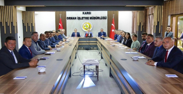 Vali Dağlı, Kargı Orman İşletme Müdürlüğü toplantı salonunda kamu kurum ve kuruluşlarının ilçe müdürleri ile bir araya gelerek, başta emniyet ve asayiş olmak üzere ilçede yapılan çalışmalar hakkında bilgi aldı.
