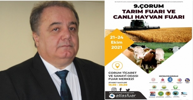 Bakan Pakdemirli’nin katılacağı Atlas Uluslararası Fuarcılık tarafından organize edilen Çorum Ticaret ve Sanayi Odası Fuar Merkezi'nde açılacak olan 9. Çorum Tarım Fuarı ve Canlı Hayvan Fuarı'na, bölge illerden bir çok firma katılım sağlayacak.