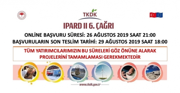 Tarım ve Kırsal Kalkınmayı Destekleme Kurumu (TKDK) Çorum İl Koordinatörlüğü, 8 Mayıs 2019 tarihinde çıkılan IPARD II 6. Başvuru Çağrı İlanı kapsamında, 8 Temmuz 2019’da başlayan proje başvurularında sona gelindiğini bildirdi.