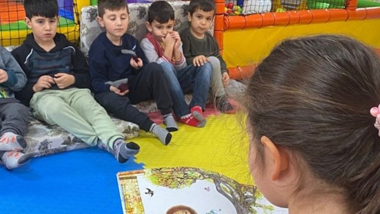 Etkinlikte minik öğrenciler, kitapları dikkatle dinleyerek hem anlatma becerilerini geliştirdi hem de dil gelişimine katkı sağlayan kazanımlar elde etti.