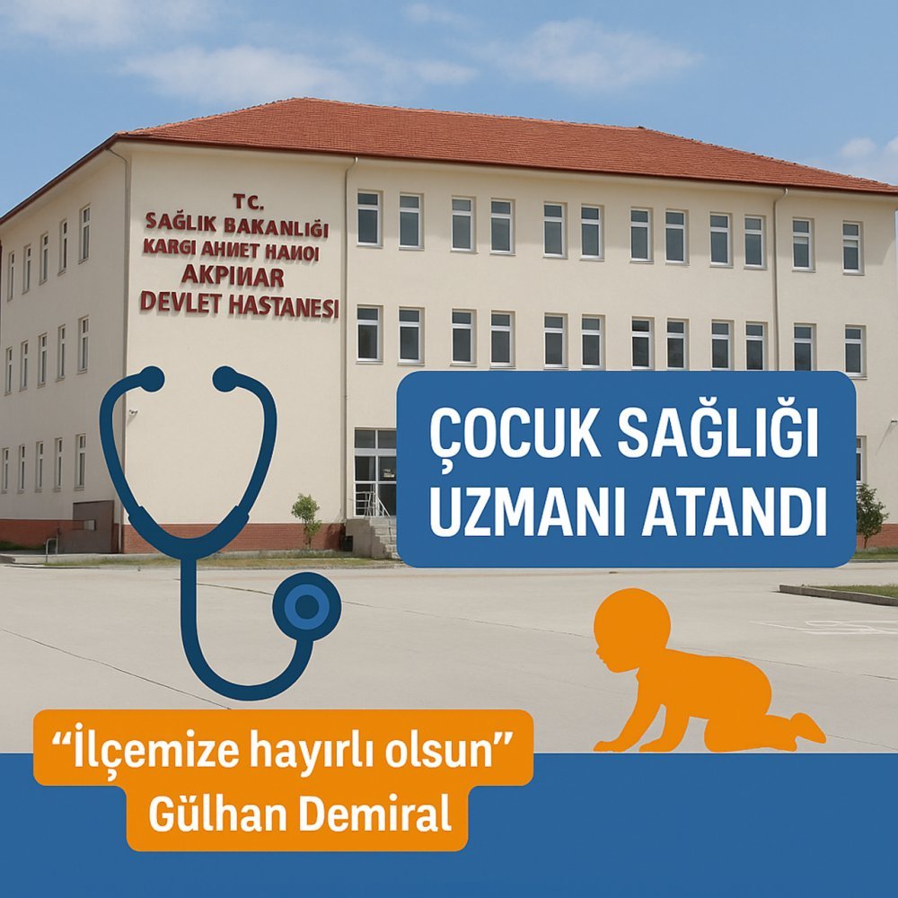Ak Parti Kargı İlçe Başkanı Avukat Gülhan Demiral, Kargı Ahmet Hamdi Akpınar İlçe Devlet Hastanesi’ne Çocuk Sağlığı ve Hastalıkları Doktoru kadrosu açıldığının müjdesini verdi.